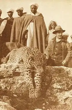 Des sportsmen anglais vinrent à la rescousse dans un tout autre esprit, mais donnèrent en 1904 de précieux renseignements sur les pratiques habituelles en Algérie, entre le Tell et le grand désert. La récompense était toujours de 40 francs-or. En 10 ans, 1 100 panthères avaient été abattues, et il en restait encore. Dès que l’on signalait une panthère, le maire de la commune organisait une battue. Une quinzaine de chasseurs européens et une centaine de rabatteurs arabes encerclaient la zone et finissaient par acculer la bête, aussitôt fusillée, ce qui n’était pas sans danger. La panthère, qui d’habitude n’attaquait pas l’homme, le faisait dès qu’elle était blessée, en étant dangereuse même pour les cavaliers qu’elle pouvait poursuivre pendant des kilomètres, jusqu’à ce qu’un dernier tir ne l’achève. La panthère était également chassée en embuscade[8],[4].