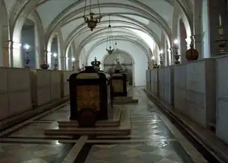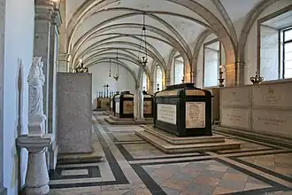 - ↑ À l'origine le roi Michel Ier de Portugal a été inhumé au monastère franciscain d'Engelberg en Bavière, et son corps a été transféré au monastère de Saint-Vincent de Fora à Lisbonne en 1967.