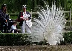Paon blanc mâle dans le Palmitos Park aux Canaries.