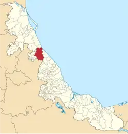 Elle est limitrophe au nord de la municipalité de Cazones de Herrera, à l'ouest de celles de Tihuatlán, de Poza Rica de Hidalgo, de Coatzintla et d'Espinal, au sud, dans l'État de Puebla, de celles de Tenampulco, de Hueytamalco et d'Acateno, et à l'est, à nouveau dans l'État de Veracruz, de celles de Martínez de la Torre, de Tecolutla et de Gutiérrez Zamora[1].