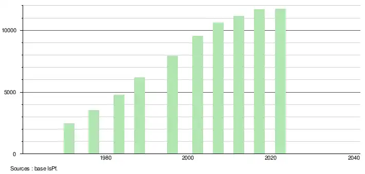 En 2017, la commune comptait 11 680 habitants[Note 3], en augmentation de 4,82 % par rapport à 2012
