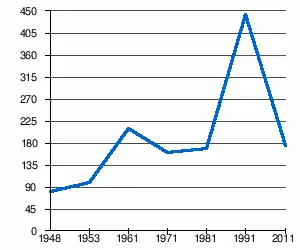 - 1 2 (sq) « Évolution de la population 1948-2011 », sur pop-stat.mashke.org (consulté le ).