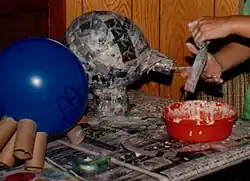 Le papier mâché est un matériau de construction composé de plusieurs bandelettes de papier, auxquelles on ajoute parfois des morceaux de textile pour le rendre plus solide, qui sont assemblées par une colle humide type colle à papiers peints. Lorsque la colle sèche, l'objet ainsi formé durcit, devient très résistant et garde la forme.