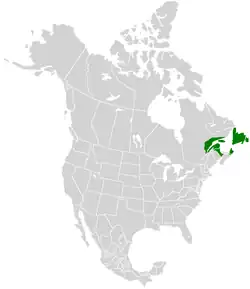 Il réside dans le nord-est de l'Amérique du Nord[1]. Au Canada, il se rencontre uniquement dans les Provinces Maritimes, à Terre-Neuve et au Nouveau-Brunswick dans les régions du Québec situées autour du golfe du Saint-Laurent. Il a été mentionné au Labrador[2]. Aux USA, il ne résiderait que dans le nord-est juste à la frontière canadienne[3].