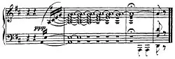 | 4 | Plus longue, possède aussi un rythme rapide (presto), reste en fa dièse mineur, jusqu'à l'accord final en fa dièse majeur. | einfache Nonne mit einer Halbmaske und einem duftenden Aurikelstrauß[2] |
