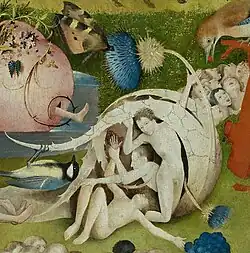 - ↑ L'écrivain Vladimir Nabokov, expert en lépidoptères, note dans Ada ou l'ardeur que celle-ci, figurée les ailes repliées, devrait donc présenter au premier plan le dessous de son aile, alors que c'est le dessus qui se trouve peint. « De toute évidence, Bosch a trouvé une ou deux ailes de ce papillon au milieu d'une toile d'araignée dans le coin de l'encadrement de sa fenêtre et il nous en montre le côté supérieur, plus joli, peignant ainsi un insecte à rebours », commente Nabokov (cité dans Witkowski 2007, p. 110-111).