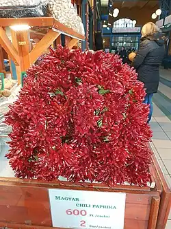 Progressivement, les poivrons traversèrent l'Europe pour atteindre au XVIe siècle une nouvelle patrie d'adoption, la Hongrie, où ils devinrent dans un premier temps des plantes ornementales, en particulier pour les châteaux de la noblesse hongroise[12]. La fermeture de voies commerciales importantes par les Turcs met alors sur le devant de la scène cette épice sous le nom de paprika et elle devient un élément emblématique de la cuisine locale[2].