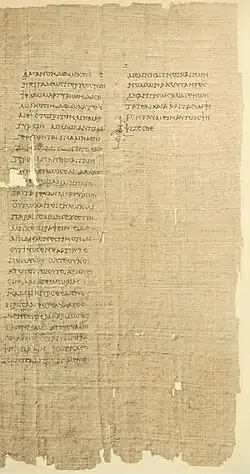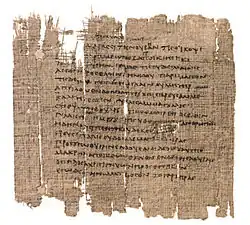 - ↑ Papyrus P. Oxy. I 31, publié par Bernard P. Grenfell et Arthur S. Hunt, The Oxyrhynchus Papyri - tome I, Oxford, , p. 60.