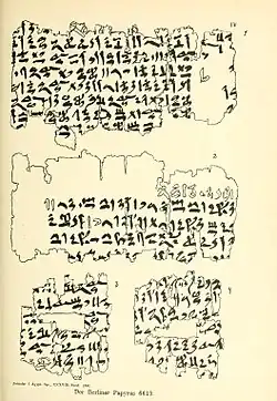 - (de) Hans Schack-Schackenburg, « Der Berliner Papyrus 6619 », Zeitschrift für ägyptische Sprache und Altertumskunde, vol. 38, , p. 135-140 (lire en ligne) (en ligne, vol. 36-39, pages 506-514)