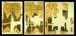 La disposition relative des différents morceaux de papyrus fait l'objet d'une discussion scientifique.
