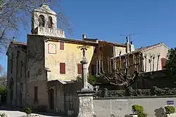 - L'église Saint-Martin, avec en particulier la croix du cimetière, classée aux monuments historiques[45]. Cette église est en mauvais état au XVIIe siècle et le bâtiment est restauré à partir de 1630, même s'il demeure trop petit pour accueillir les paroissiens de Paradou et de Maussane-les-Alpilles. C'est pour l'agrandir qu'est construite une chapelle latérale. L'église actuelle a été largement remaniée à la fin du XIXe siècle. Le clocher date de 1772[46].