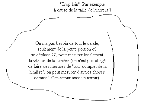 On pourrait invoquer que dès que le cercle devient trop grand (par rapport à l'univers ou par rapport à l'univers observable), c’est-à-dire lorsqu'on est obligé de considérer uniquement l'arc de cercle, alors la lumière ne pouvant plus faire « le tour », la vitesse n'est plus anisotrope.