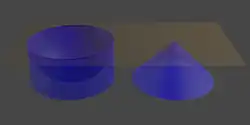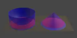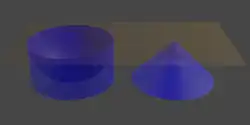 - est le « bol », c'est un cylindre de rayon 1 et de hauteur 1, auquel on a soustrait une demi-sphère de rayon 1, concentrique à la face supérieure.
