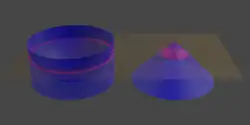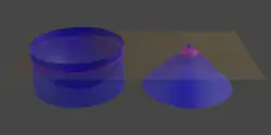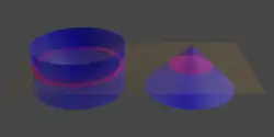 Lorsque le plan de coup arrive au sommet des volumes (), est réduit à un cercle, tandis que est réduit à un point (le sommet du cône). On est alors face à une situation paradoxale : un cercle serait égal à un seul point.