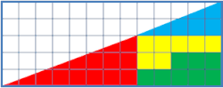 Cela donne un triangle d'aire 12 + 5 + 7 + 8 = 32. Or si on applique la formule de l'aire au triangle, on obtient 13 × 5 / 2 = 65/2 = 32,5.
