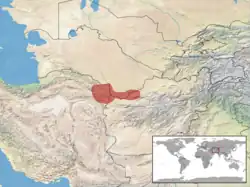 Cette espèce se rencontre entre 1 000 et 2 440 m d'altitude dans le sud-est du Turkménistan, dans le nord de l'Afghanistan et dans le nord-est de l'Iran[1].