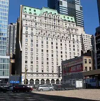 L'hôtel en forme de H compte 19 étages, est pourvu de des cours lumineuses à l'ouest et à l'est. Les façades nord et sud de l'hôtel présentent de nombreux décrochements. La façade est en briques, pierre et terre cuite ; la plupart des détails décoratifs sont sur la façade sud de la 46e rue. Le bâtiment comporte une colonnade en marbre blanc à deux niveaux donnant sur la rue[3], ainsi que plusieurs balcons. Le bâtiment présente un toit en croupe à double hauteur flanqué de mansardes. Le sous-sol abrite un espace événementiel, le Sony Hall, historiquement connu comme boîte de nuit et théâtre. Le design du hall d'entrée résulte d'une rénovation réalisée en 1990 par Philippe Starck.