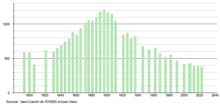 En 2022, la commune comptait 379 habitants[Note 2], en évolution de −2,07 % par rapport à 2016 (Allier : −1,38 %, France hors Mayotte : +2,11 %).