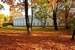 La Petite Maison Blanche (Biały Domek) est une villa construite entre 1774 et 1776 par Domenico Merlini[9]. Elle hébergea la maîtresse du roi Poniatowski et, pendant un temps, Louis XVIII[10], qui y vécut de 1801 à 1805 pendant son exil de France[11]. Construite selon un plan carré, elle présente des façades identiques, ornées de moulures, d'un grenier et d'un petit pavillon au sommet. Les intérieurs ont été décorés par les peintres polonais Jan Ścisło et Jan Bogumił Plersch[11].