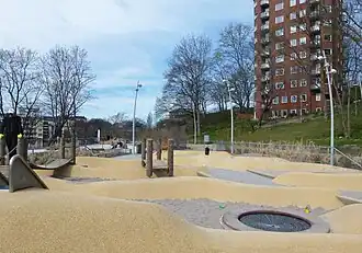 L'attraction principale du parc est une aire de jeux située dans la partie nord, conçu par l'artiste Tor Svae, et qui est liée à l'ancienne activité industrielle qui y existait. L'aire de jeux comprend entre autres un chantier naval miniature, un atelier de mécanique avec des machines, un atelier de menuiserie avec une scierie, une montre de plongée et un remorqueur rouge vif appelé Hildur. Une petit bidonville de la taille d'un enfant est accroché sur le Danviksklippan et sert de portique d'escalade. Tout est fidèlement construit avec des pièces originales provenant de divers ateliers et les enfants peuvent jouer avec tout[3].