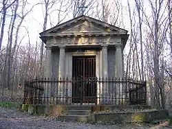 Dans le parc, il y a deux obélisques, dont l'un avec le nom KYSELAK gravé dessus. Joseph Kyselak a fait de nombreuses longues randonnées à travers les bois de Vienne pendant son temps libre pendant la période Biedermeier. Equipé d'un pot de peinture à l'huile noire, il a laissé ses célèbres lettres «KYSELAK» sur de nombreuses ruines, dalles de roche et piliers de ponts dans toute l'Autriche. Le nom Kyselak peut encore être trouvé aujourd'hui sur divers murs et places, bien que souvent sous une forme mutilée. La plupart des tags portant le nom Kyselak sont des faux modernes.