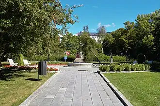 Le niveau inférieur du parc Setterberg avec sa fontaine au milieu.