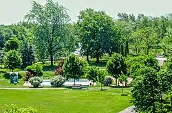 La caractéristique la plus marquante du terrain de 6,1 ha (15 acres) est la fontaine située au sommet de la colline ; elle a été offerte par Lord Strathcona en 1909 et sculptée par l'artiste français Mathurin Moreau. Les quatre figures debout symbolisent les quatre continents (Europe, Asie, Afrique, Amérique), ce qui était une métaphore artistique couramment utilisée jusqu'au XIXe siècle[2]. Une fontaine jumelle se dresse dans le centre-ville de Buenos Aires.