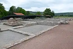 Les thermes, « premier monument à être dégagé et fouillé » du côté français de la frontière[I 4], sont fouillés en 1982-1983[I 1] et entre 1988 et 1992[J 41]. Les vestiges des thermes les mieux conservés datent de la fin du IIe et du milieu du IIIe siècle[K 16].