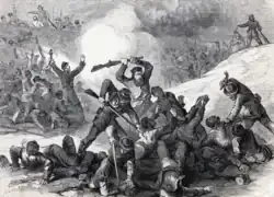 L'armée des États confédérés (Confederate States Army) a vaincu les troupes de l'Union lors de la bataille de Fort Pillow (avril 1864), entraînant le massacre de 229 des 262 soldats noirs de l'Union engagés dans la bataille[1], tandis que les soldats blancs de l'Union étaient au nombre de 285. L'examen des registres régimentaires montre que "moins de 36 % des hommes des unités blanches sont morts au combat ou des suites de leurs blessures, alors que le nombre de morts dans les unités noires s'élève à 66 %"[2].
