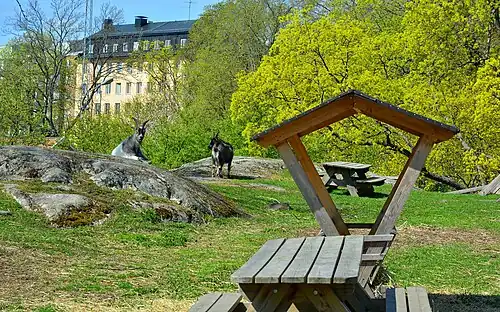 Le parc possède de nombreux arbres grands et précieux, en particulier sur la pente montant vers la zone de de Blecktorn. Au sud-ouest se trouve une zone à caractère naturel avec un sentier pédestre à travers les rochers. La municipalité de Stockholm a aménagé une aire de jeux au milieu du parc avec balançoires et toboggans. Dans le parc il y a aussi des cochons, des moutons et des lapins dans des enclos.