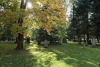 Dès 1813, on plante des bouleaux dans le cimetière[1], mais au début des années 1880 le jardinier municipal Karl Johan Gauffin conçoit un nouveau parc autour de l'église dans lequel on plante des saules argentés, des mélèzes de Sibérie et des ormes. En 1898, son successeur Onni Karsten espacera les arbres et fera de nouveaux sentiers[3],[1]. Même si Le cimetière est un parc depuis un siècle il y reste de nombreuses pierres tombales.