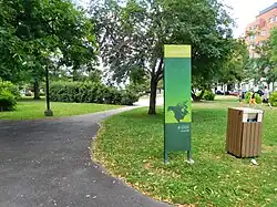 Le parc de l'Amérique-Française vu depuis la promenade du Boulevard René-Lévesque. | |||