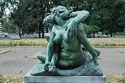 Particulièrement appréciée aux Salons de Paris et Bruxelles, l'œuvre de Jef Lambeaux réalisée 1903 entraîne des réactions indignées lors de sa présentation lors de l'Exposition universelle de 1905. Le public liégeois s’offusque de cette scène de lutte entre les corps nus enlacés d’un faune et d’une femme aux formes pleines. Le Comité de l’Exposition vote même la réexpédition de l’œuvre à l’artiste. Finalement, pour réparer l’affront fait à ce sculpteur de renom, la Ville achète le bronze qui sera placé dans la roseraie du parc après la Deuxième Guerre mondiale[8].