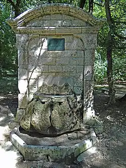 La fontaine de Saint-Jean est située à côté de la grotte de Fleurette[27]. Elle fut construite par les chevaliers de l'ordre de Saint-Jean de Jérusalem qui avaient une commanderie installée sur le plateau dominant le parc[46]. On distingue sur cette fontaine trois masques en reliefs d'où jaillit l'eau[46].