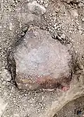 - Les fosses communes sans structure, à côté desquelles ont été observés des restes de piquets en fer indiquant l’utilisation de structure en bois pour l’enterrement du défunt.