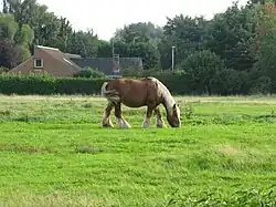On trouve dans les pâturages au bord du lac du Héron des chevaux de trait.