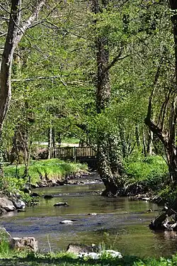 Vue du parc en hiver. L'Auzette dans le parc. L'Auzette dans le parc. Chemin aménagé en hiver.