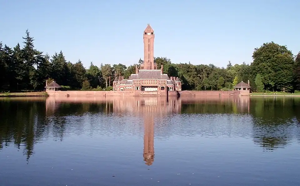 Le pavillon Saint-Hubert (Jachthuis St. Hubertus) construit par l'architecte H. P. Berlage (né le à Amsterdam ; mort le à La Haye) est — avec le musée — la seconde grande construction du parc. Isolé au milieu des bois, il a été voulu par Mme Kröller-Müller, collectionneuse passionnée, comme rassemblant harmonieusement le goût de la nature et celui de l’art. Il abrite les anciens appartements de M. et Mme Kröller-Müller richement meublés et décorés, faisant face à une grande pièce d’eau.