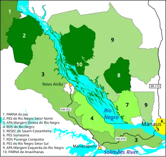 - ↑ (en) « APA Margem Esquerda do Rio Negro | Conservation Areas in Brazil », sur uc.socioambiental.org (consulté le )