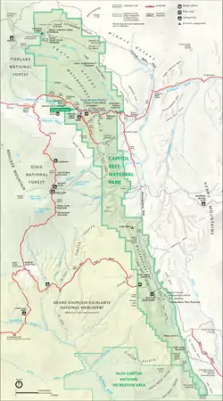 - 1 2 3 (en) « Carte du parc de Capitol Reef », National Park Service, (consulté le )