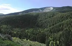 La forêt de conifères est surtout composée de l'épicéa d'Engelmann (Picea engelmannii), du sapin subalpin (Abies lasiocarpa), du sapin de Douglas (Pseudotsuga menziesii) et de l'épicéa bleu (Picea pungens). Les deux premiers conifères peuvent pousser jusqu'à des altitudes proches de 3 000 mètres tandis que les autres apprécient davantage le fond des vallées[38]. Les feuillus sont plutôt présents dans les zones proches des rivières comme le Populus angustifolia et le peuplier faux-tremble (Populus tremuloides), qui se teignent en jaune et orange durant l'automne[37].