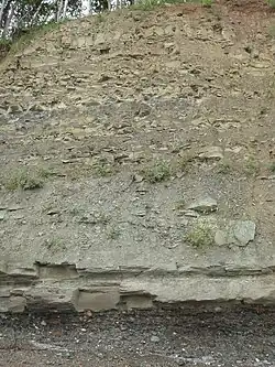 Le grès correspond au moment où le courant était le plus puissant[12]. La base de ses couches présente souvent des moulages de flûtes et des traces d'objets trainés correspondant à un courant turbulent[12]. Quant aux couches de laminites, elle correspondent à des couches d'argiles qui se sont déposés dans un milieu beaucoup plus calme. Ces dernières sont généralement très fossilifères[12].
