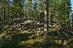 Amas de pierres polies par les vagues avant d'être totalement émergées par le rebond post-glaciaire.