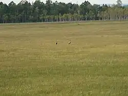 Sur les terrains secs se développe une forêt de pins caractéristique de la taïga[S 7]. Le sol est souvent constitué de sable ce qui donne des sous-bois secs, avec de la bruyère et de l'airelle rouge (Vaccinium vitis-idaea), ainsi que des tapis de pleurozie dorée (Pleurozium schreberi)[S 7]. Certaines zones ont cependant un terrain un peu plus humide, en particulier dans la zone de transition avec les tourbières, permettant le développement de myrtille (Vaccinium myrtillus), de trientale d'Europe (Trientalis europaea) et de maïanthème à deux feuilles (Maianthemum bifolium)[S 7].
