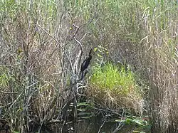 Le marécage d'eau douce constitue certainement l'écosystème le plus commun du parc national des Everglades. Ses canaux de drainage se caractérisent par des zones de faible profondeur qui s'écoulent très lentement (vitesse inférieure à trente mètres par jour)[38]. Parmi les exemples les plus significatifs, on peut citer les marais de Shark River et de Taylor. Cladium mariscus subsp. jamaicense, une sous-espèce des marisques, pouvant pousser jusqu'à atteindre une hauteur de 1,8 mètre, et les autres plantes marécageuses à larges feuilles, sont si courantes dans cette région qu'elles ont valu aux Everglades son surnom de River of Grass (littéralement, « rivière d’herbe »). Les marécages des Everglades constituent un habitat idéal pour la reproduction et attirent ainsi une grande variété d'échassiers tels que les hérons, les aigrettes, les spatules rosées, les ibis, les pélicans ainsi que des courlans bruns et des milans des marais qui se nourrissent d’escargots de la famille des ampullariidae. La forte densité de poissons, d'amphibiens et de jeunes oiseaux attire de nombreux prédateurs, comme les alligators, les tortues d'eau douce, les mocassins d'eau ou les crotales. À ce titre, le parc national des Everglades est le seul endroit au monde où les crocodiles coexistent de manière naturelle avec les alligators[39].