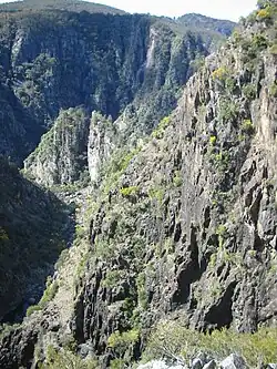 Parce que les conditions sont extrêmes sur les falaises, un grand nombre d'arbustes rares s'y trouvent. Il s'agit notamment de : Dodonaea rhombifolia, Dodonaea serratifolia, Grevillea beadleana, Grevillea obtustiflora, Hakea fraseri, des figuiers grimpants, des orchidées et des Westringia. Bertya ingramii est une espèce d'arbustes menacée que l'on trouve en deux endroits, parmi les rochers ou les sols minces à proximité de falaises dans les forêts sèches avec les Casuarinaceae, les acacias et les arbres à thé.