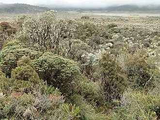 Les températures maximales durant la journée se situent entre 14 et 16 °C, et les températures minimales nocturnes descendent en dessous de 0 °C[4]. La moyenne annuelle de précipitations est de 2 500 mm et tend à diminuer tandis que l'altitude croît. Le gel est courant au-dessus de 3 000 mètres et quasi journalier au-dessus de 4 200 mètres[6].