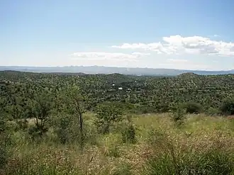 La végétation est typique de la savane de montagne et est composée notamment de buissons épineux.