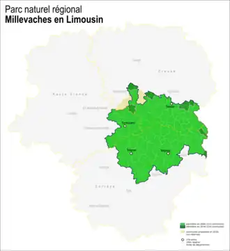 - ↑ Eric Porte, « Onze communes de Corrèze et de Creuse intègrent le Parc naturel régional Millevaches en Limousin », sur La Montagne, (consulté le ).