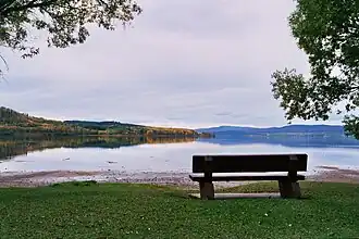 Vue du lac Fraser à partir de la plage du parc provincial du lac Beaumont
